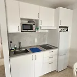 An equipped kitchenette is provided at Teguisol Apartment Access to a golf playground helps guests maintain their bodies.